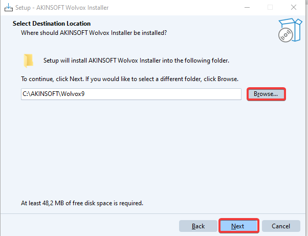 Once the download is complete, extract the installer.zip file and run wissetup.exe. Then, choose the destination folder where the program will be installed by using the Browse button. After confirming your selection and accepting the license agreement, complete the installation process.