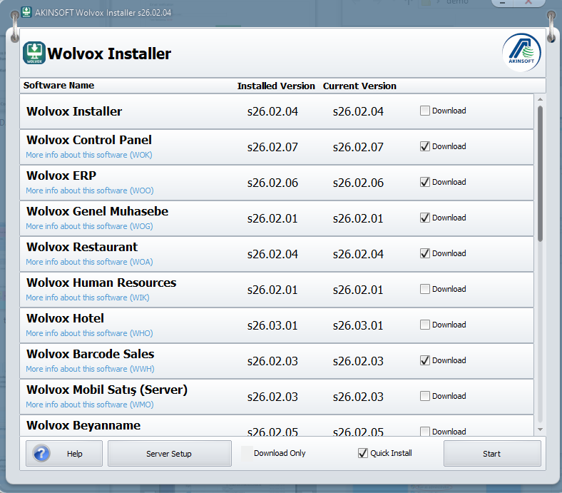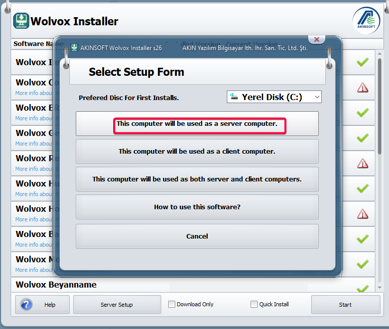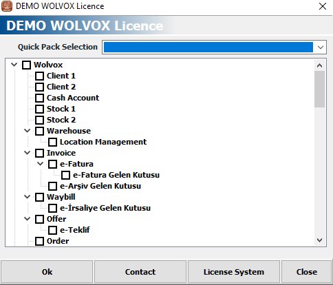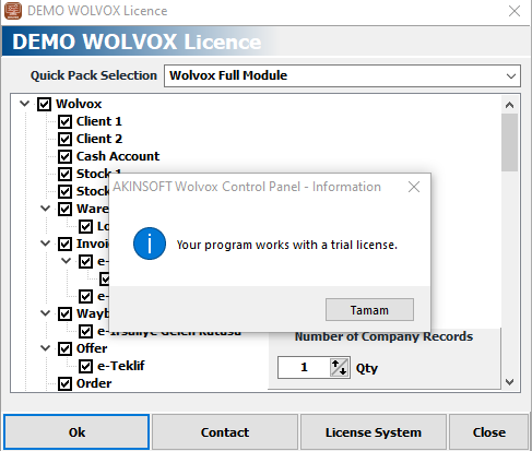 Choose how your demo usage will be. If you do not know about module structure, you can directly select the 'Wolvox Full Module' option.
