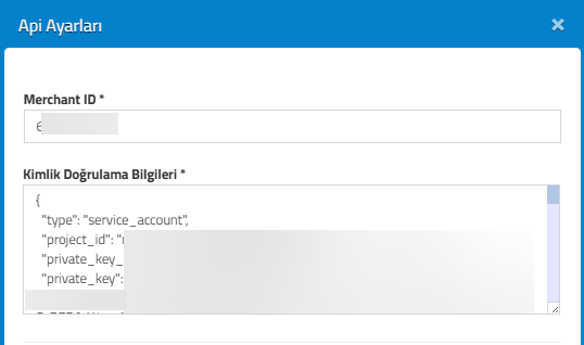 • Bilgisayarınıza 'content-api-key.json' isminde bir dosya indirilecektir. Bu dosyayı bilgisayarınızda açtıktan sonra içeriğini Kimlik Doğrulama Bilgileri alanına eklemeniz gereklidir.