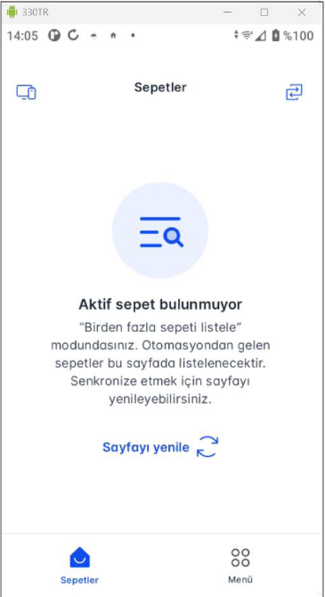 BEKO x30TR üzerinde kablosuz satış entegrasyonunda 2 farklı çalışma tipi bulunmaktadır. AKINSOFT Restoran entegrasyonun Sepet Ödemesini Hemen Al tipi ile entegrasyonlu bir şekilde çalışmaktadır. Cihazınızı ilk açtığınızda "Sepet Ödemesini Hemen Al" modu ile karşılaşırsınız. Cihazınızı ilk açtığınızda "Sepet Ödemesini Hemen Al" modu ile karşılaşırsınız. Bu sepet modu ödemenin hemen alınacağı durumlarda kullanılır. Bu uygulama tipini kullanabilmek için TokenX Connect uygulaması "Sepet Ödemesini Hemen Al" modunda olmalıdır. Ödemesi alınan sepet otomatik olarak kapatılacaktır. Bu modu sağ üstte bulunan ikona tıklayarak seçebilirsiniz