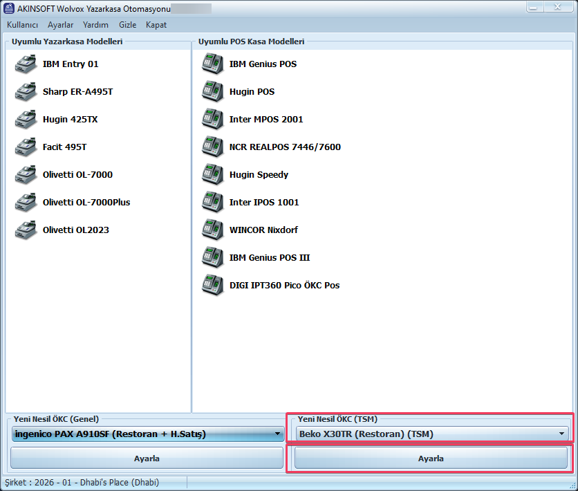 TSM Alanı bölümünden BEKO X30TR (Restoran) (TSM) seçeneğini seçip ‘Ayarla’ butonuna tıklayın.