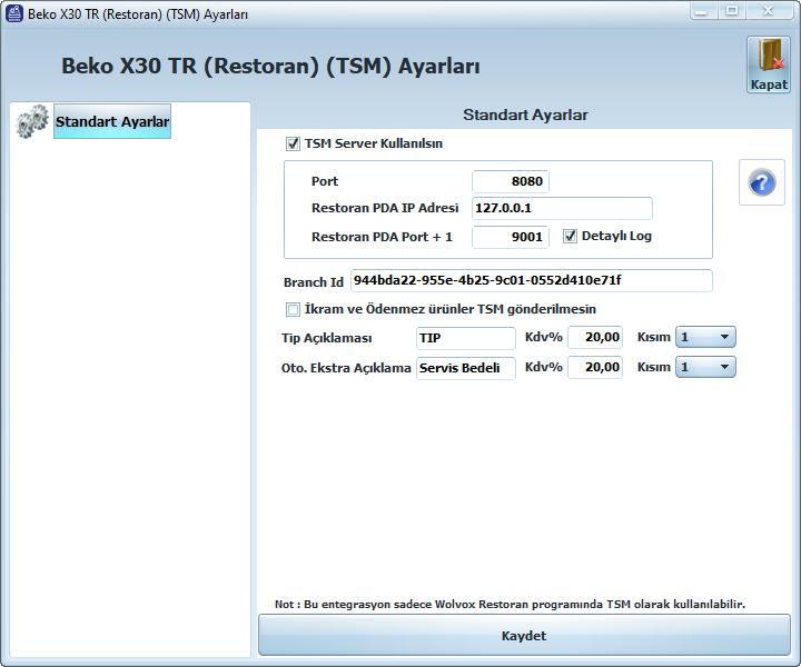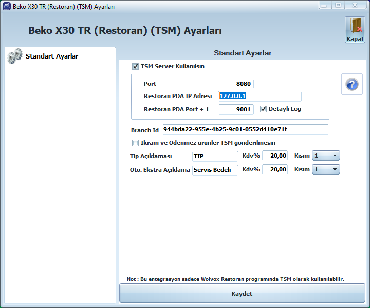 Detaylı Log Aktif: Tsm ve Restoran yazılımı arasında haberleşme loglarının detaylı kayıt edilmesi.