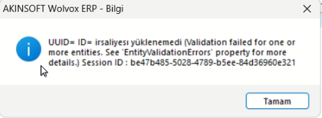 e-İrsaliye Gönderiminde "EntityVaIidationErrors property " Hatasının Çözümü