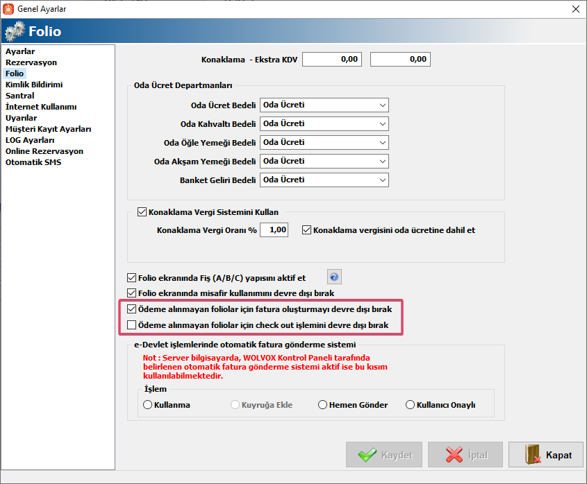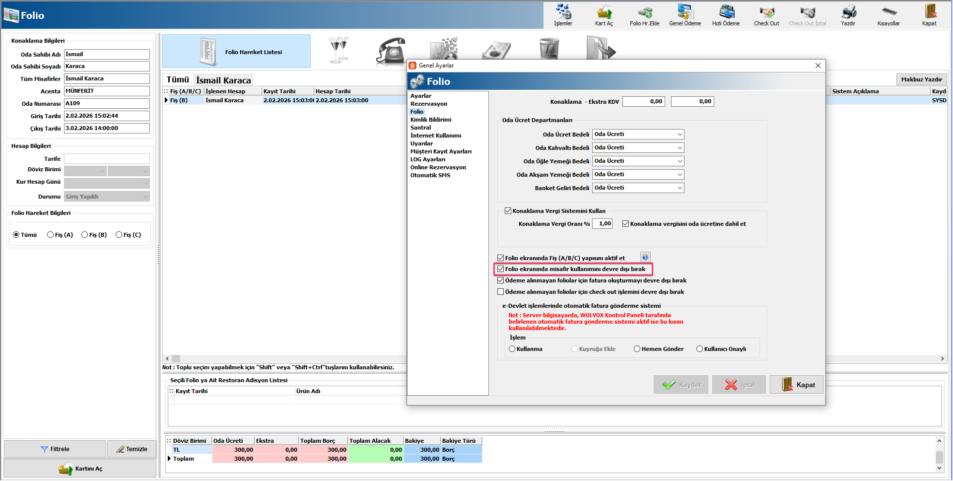 Folio içerisindeki Misafir hesabının kaldırılması için ayar eklendi.