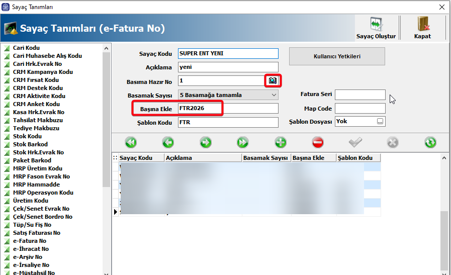 İlgili uyarı mesajı sayaç tanımları başına ekle alanında 2025 yazmasından kaynaklıdır. İlgili yere 2026 yazıp, basıma hazır no yanındaki icona tıklayıp 1 yazıp kaydedebilirsiniz.
