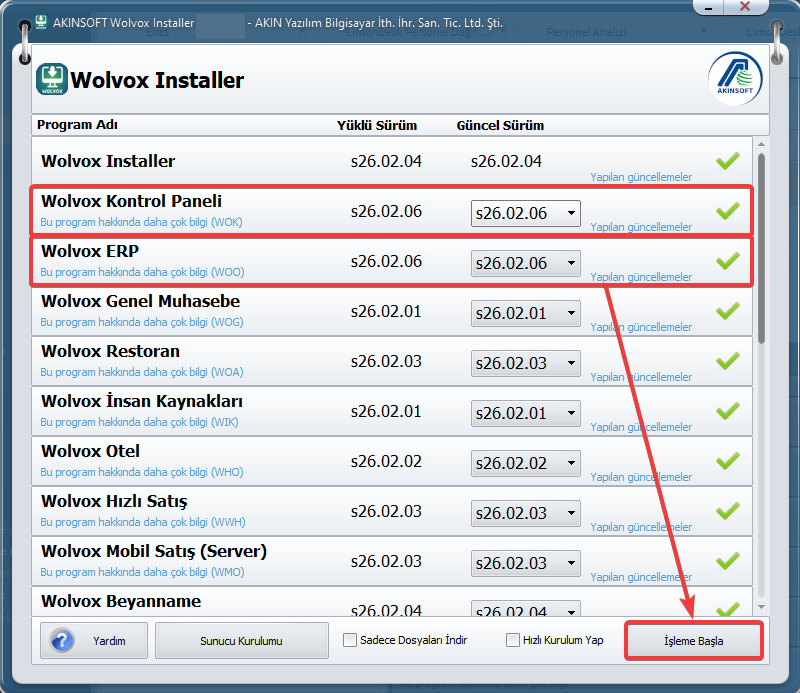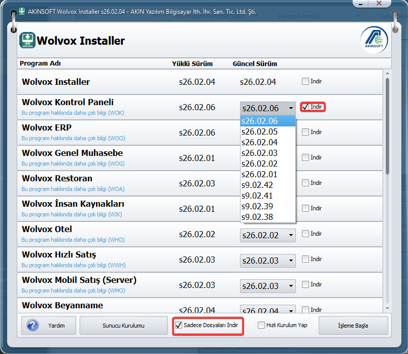 Eğer installer programı bilgisayarınızda mevcut değilse, https://www.akinsoft.com.tr/programlar/detay/wolvox-erp-programi-erp-mrp-on-muhasebe--woo9#download linkinden indirebilirsiniz.