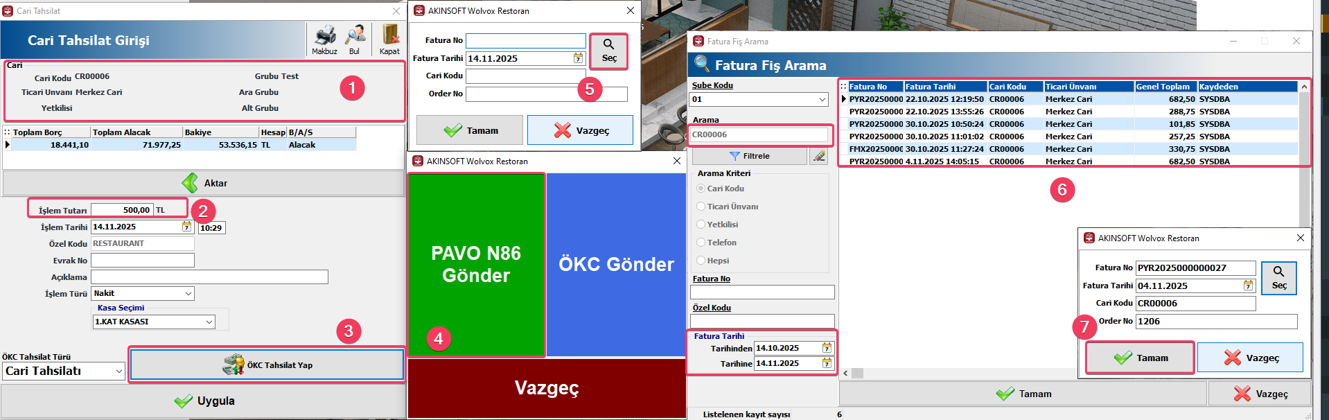 5.Adımdaki ekran seçtiğiniz faturanın bilgileri ile dolacaktır. Tamam butonuna basarak işlemine basın eğer birden fazla PAVO cihaz tanımınız varsa hangi cihaza göndereceğinizi seçin ve cihazdan işleme devam edin.