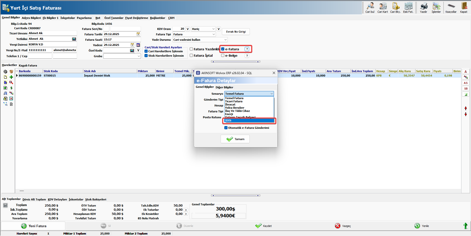 “IDIS” fatura türü, normal bir mal satışından farklı olarak inşaat demiri teslimatının sistem üzerinden izlenmiş ve bu izlemeye ait bilgilerle birlikte belgeye yansıtılmış versiyonudur.