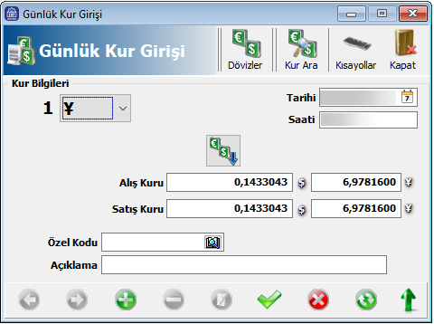 Günlük Kur Girişi ekranını açın. Aşağıdaki görselde olduğu gibi artık bu script yardımı ile kurları tersten girişi sağlanabilmektedir.
