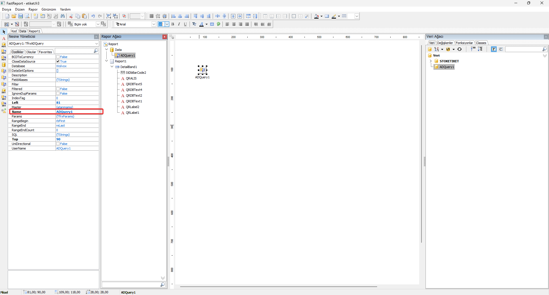 Eklenen ADQuery1 şeklinde bir query objesidir. Sol kısımdan ismi değiştirilir.