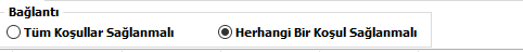 Koşula eklediğiniz kayıtların gözüktüğü alandır.