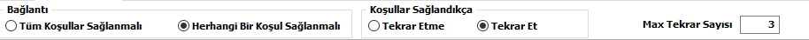 Max Tekrar Sayısı → Koşullar Sağladıkça alanında Tekrar Et ayarı işaretlendiğinde, tekrar koşullar sağlandığı halde kaç kere tekrar edeceğini belirler.