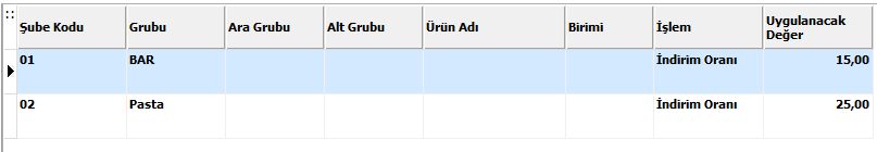 İndirim alanına eklenen tüm kayıtlara toplu olarak işlem türü belirlenmesini sağlar