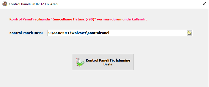 4. Kontrol Paneli Fix İşlemine Başla butonuna tıklayın. Bu aşamada Kontrol Panel programının kapalı olduğundan emin olunuz.